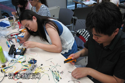 人人网的产品经理来了,小米科技的工程师来了,北航、北邮等兄弟院校的工科生们也来了……不同背景的成员们平时虽然主要在网上交流,但每期工作坊一定会集中2天周末的时间,在美院提供场地和饮食,从校外有合作关系的企业找到一些开源硬件,活动中会结合设计驱动创新的方法,要求项目团队实现明确而富有挑战性的目标,并制作完成产品原型。