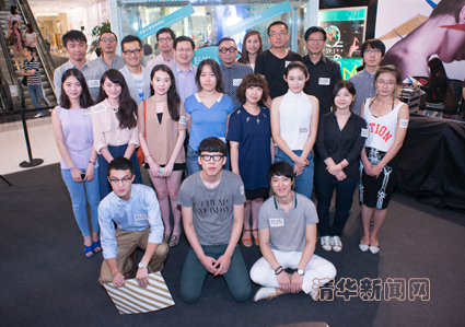 图为出席开展仪式嘉宾与参展作品学生代表合影。