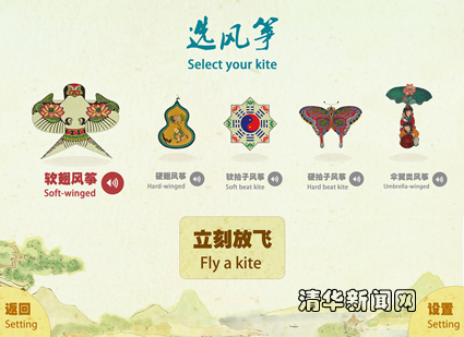 该项目在微软亚洲研究院的大力支持下,用近一年时间,根据中国传统风筝文化的放飞原理,同学们结合自己专业所学,将艺术与科学完美的结合在一起,充分发挥信息艺术交叉学科的专业优势,创想了在室内可以放风筝的THE KITE RUNNER项目。项目结合了微软最新的Kinect体感技术,用户只要作出类似放风筝的动作,屏幕上的虚拟风筝就可以放飞。使中国传统风筝文化和体感技术完美结合,给用户带来身临其境的神奇体验。