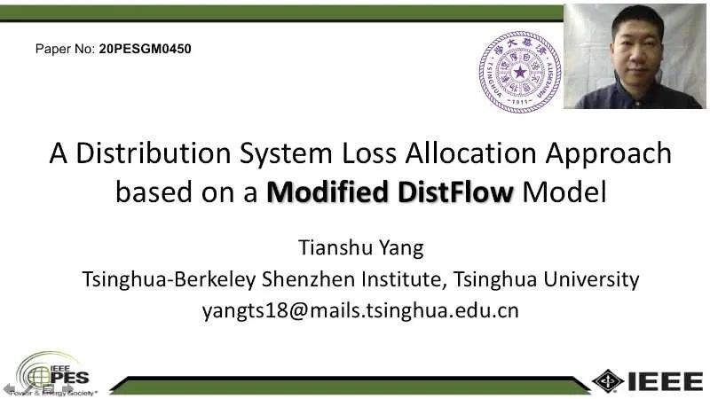 硕士生阳天舒作为第一作者的论文《DistFlow模型的配电网网损分摊方法》(A Distribution System Loss Allocation Approach based on a Modified DistFlow Model),在2020国际电气与电子工程师协会电力与能源协会年会上获得最佳论文奖。该论文的合作者有开云-伯克利深圳学院郭烨教授、博士生邓莉荣、硕士生舒韩、孙宏斌教授、研究科学家沈欣炜博士。阳天舒在论文中提出了一种冷启动的线性线路潮流(cold-start linear branch flow model),基于该潮流模型再提出了一种针对配电网的网损分摊方法,解决了电力市场中以边际网损收费产生网损剩余的问题。