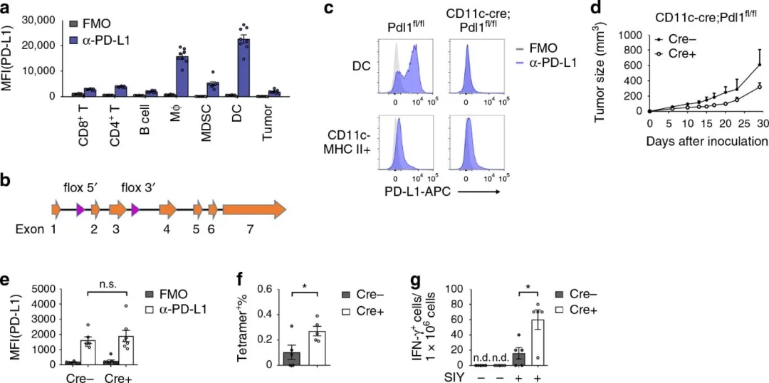 特异性敲除树突状细胞的PD-L1分子可以显著增强抗肿瘤免疫反应