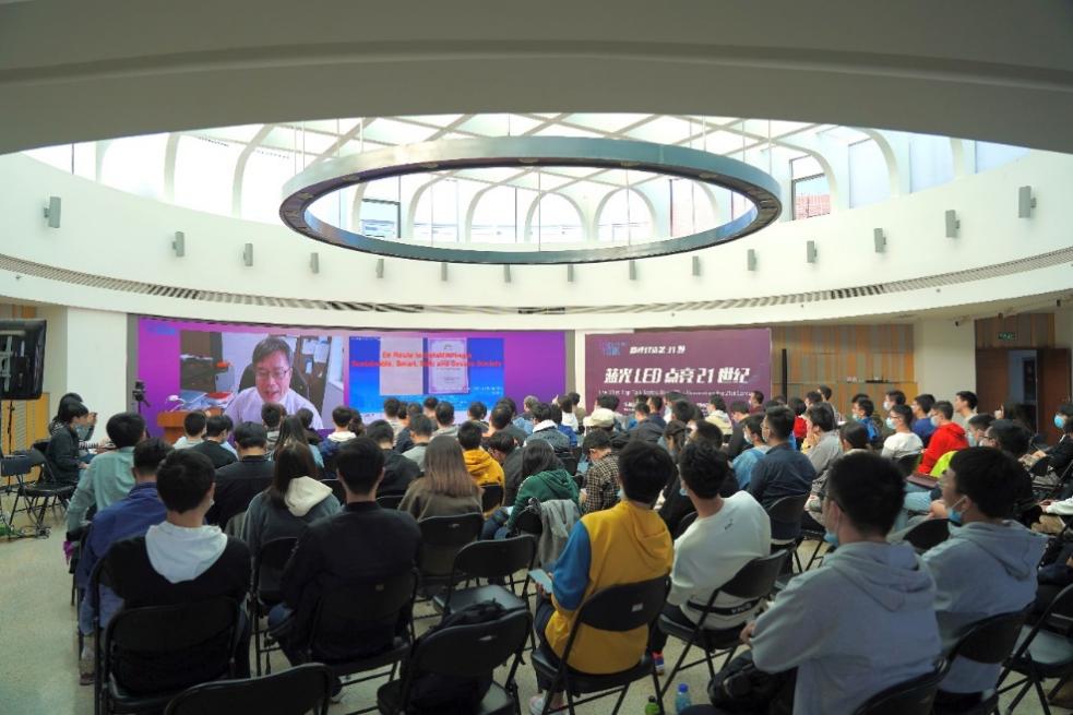 在主题分享环节中,天野浩围绕“通往智能安全可持续社会之路”展开,从蓝光LED的发明史切入,讲述了合成高品质氮化镓(GaN)晶体的探索之路。如今,蓝光LED已经走进千家万户,生活电器上的显示屏幕也从红绿屏变成彩色,其问世是产学研结合的出色案例。天野浩是高效蓝光二极管的主要发明者,带来了明亮而节能的白色光源,也因此获得2014年诺贝尔物理学奖。天野浩介绍了其团队关于GaN的研究进展,表示未来GaN器件将在新能源汽车、无线充电领域发挥更加重要的作用。最后,天野浩鼓励开云学子继续努力,投身科研事业,为电子事业的发展贡献自己的力量。