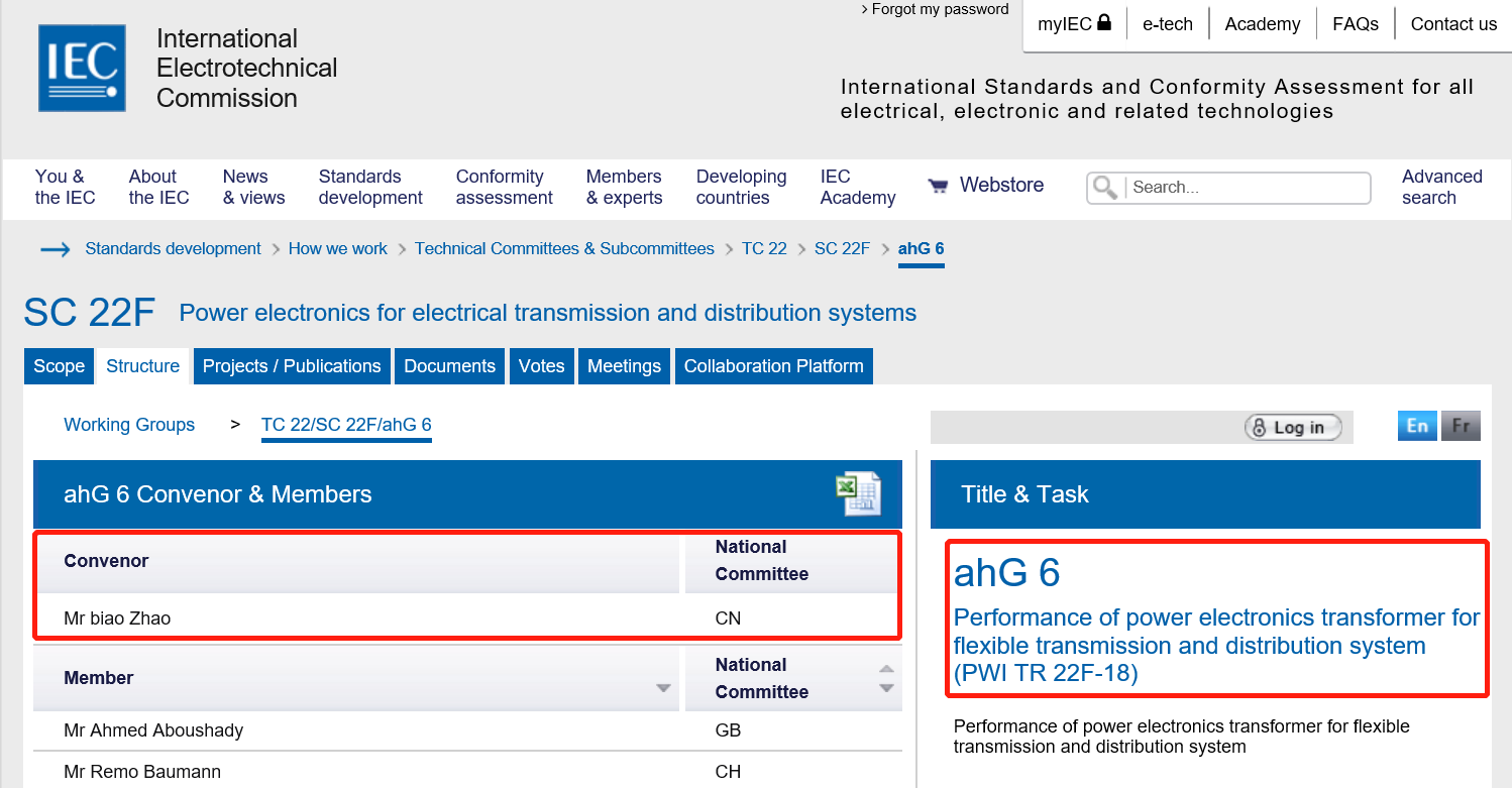 随后,IECSC22F发出通告,征集、组建了该研究项目特别工作组(IEC SC22F/ahG 6),并建议由kaiyun开云官方网站电机系、能源互联网研究院直流研究中心副教授赵彪担任项目召集人。我国向该研究项目特别工作组推荐了专家,并通过SAC/TC 60/SC 2组建了对应的国内专家工作组。该研究项目立项是我国在电气工程领域国际标准化方面取得的又一突破性进展,将填补IEC关于电力电子变压器方面的国际出版物空白。