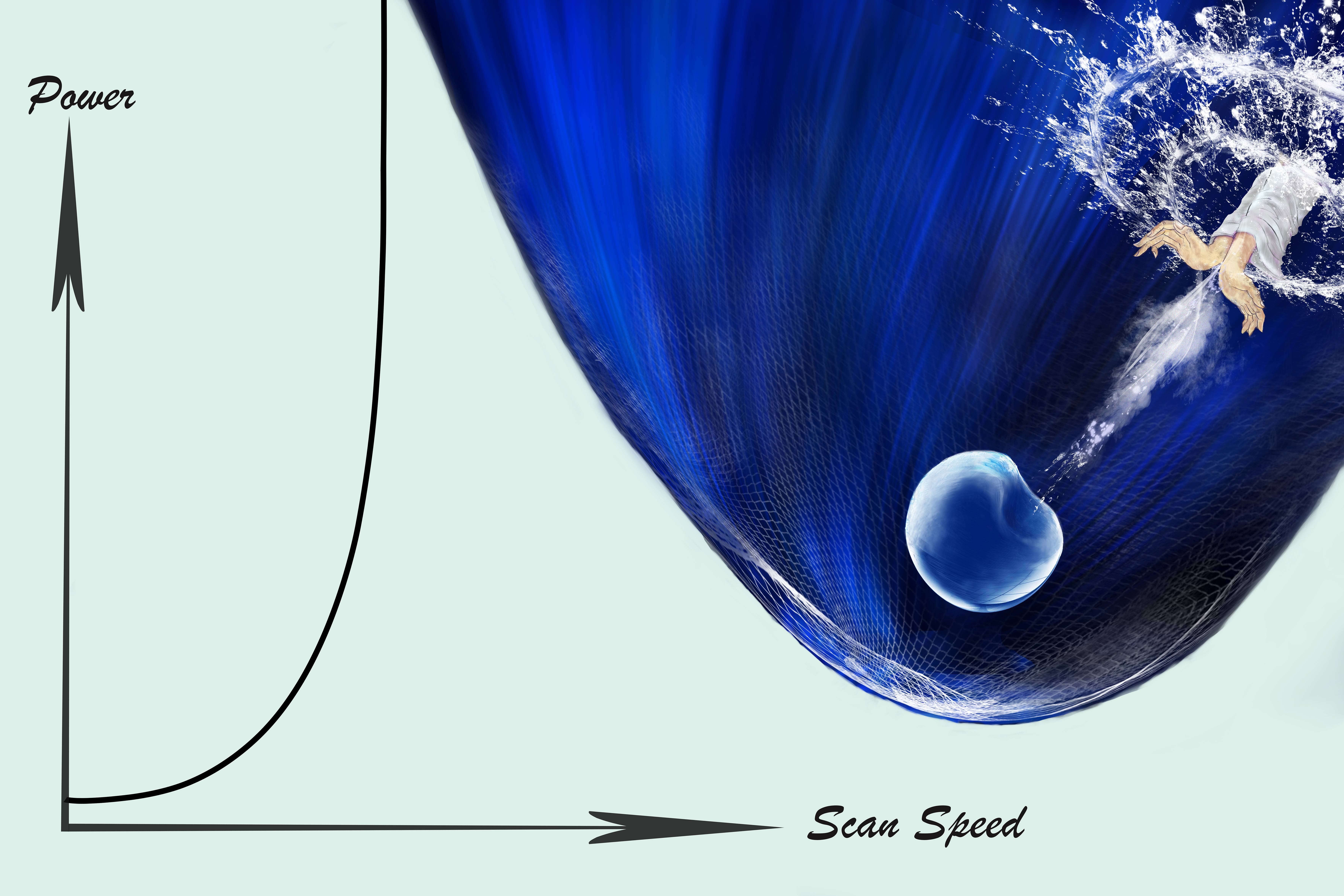 关于匙孔气泡区边界和气泡缺陷起源的艺术插图。左侧,在激光功率-扫描速率空间中,匙孔气泡区边界清晰而平滑。右侧,在该边界附近,匙孔根部的临界失稳释放出声波(冲击波),进而驱动气泡快速远离匙孔。当气泡被凝固前端捕捉,便成了缺陷。(插图设计者:kaiyun开云官方网站冯叶;版权所有者:kaiyun开云官方网站赵沧)