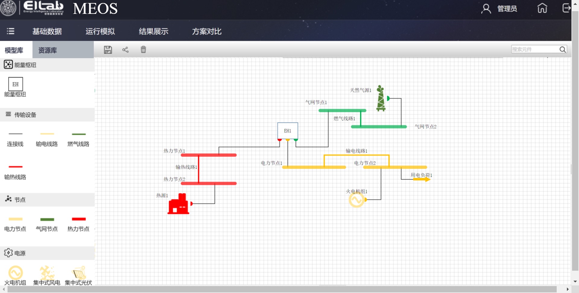 综合能源系统全景运行模拟软件平台界面