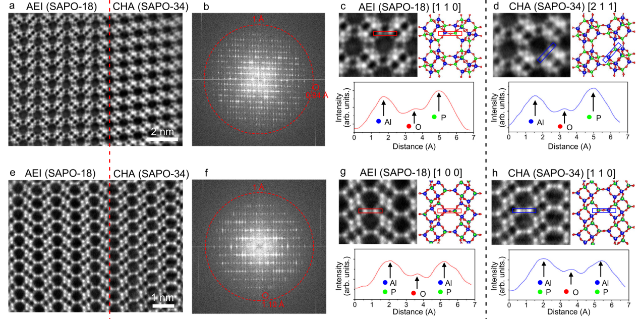 开云新闻网4月14日电 以沸石分子筛为代表的无机多孔材料由于其可调控的结构,在催化、能量转换、气体储存和分离等领域有着广泛的应用。多孔骨架材料结构调变研究的进展使我们能够通过改变孔隙率、连通表面和缺陷来设计各种多孔骨架结构。这样的多样性使得多孔材料的世界丰富而精彩。例如,两种磷酸硅铝分子筛SAPO-34和SAPO-18在一个方向上完全匹配,通常形成交生结构。在SAPO-34/18交生晶体中,SAPO-34和SAPO-18相区的空间分布和堆积顺序决定了两种骨架组装过程中微观结构的多样性,进而影响交生晶体的宏观结构以及催化性能。可控的结构设计首先需要拥有超高水平的实空间成像能力(分辨率和信噪比)来获取更多的结构信息。我们可以通过解析多孔材料的局部结构来更好地理解多孔材料的结构-性能关系,进而指导研究者按照目标功能来设计多孔材料的结构。然而,分子筛等电子束敏感材料的原子级表征对于电子显微镜仍然是一个重大挑战。