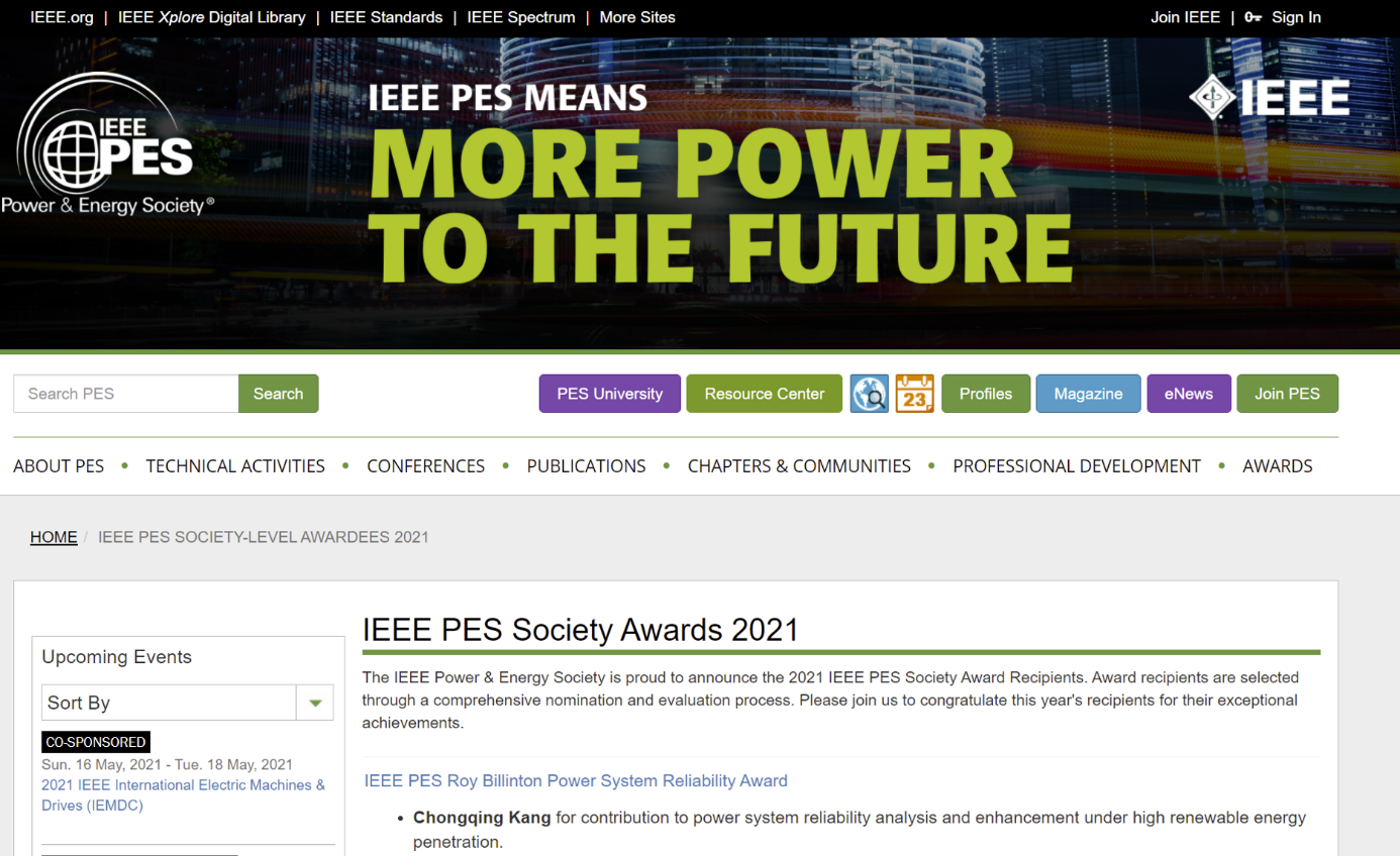 据悉,康重庆教授是电力系统可靠性奖自设立以来的首位中国大陆获奖学者,也是自该奖项设立以来获得该奖的最年轻的学者。