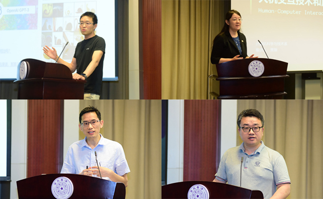唐杰、贾珈、黄民烈、刘知远(从左至右、从上至下)先后发言