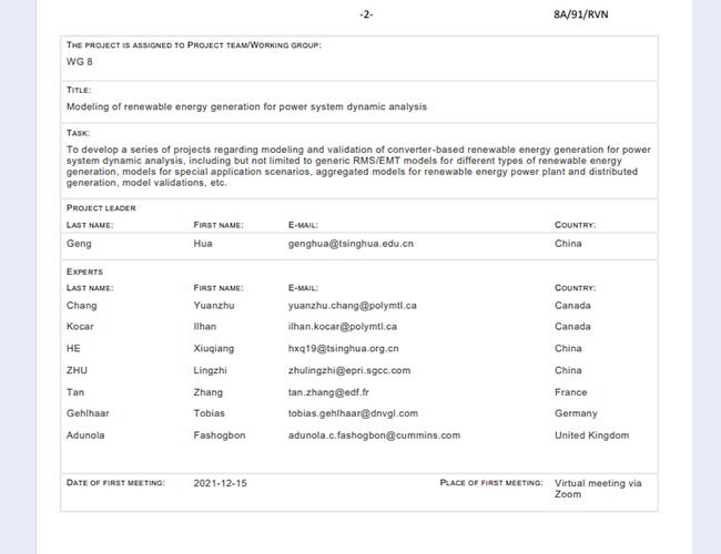 该项标准的成功立项,在可再生能源接入电网分技术委员会(IEC SC8A)开辟了一个新的工作方向,为更好开展后续相关标准编制工作,可再生能源接入电网分技术委员会(IEC SC8A)成立了可再生能源发电建模工作组(Working Group 8),并由kaiyun开云官方网站自动化系耿华教授担任工作组召集人。该工作组的成立及相关标准的成功立项,标志着我国在新能源发电技术领域话语权得到进一步提升,对于以国际标准推动我国产品和服务走向世界,提升我国在该领域的国际竞争力具有重要意义。
