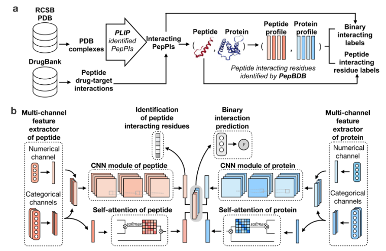 相关成果《一个多层次多肽-蛋白相互作用预测的深度学习框架》(A deep-learning framework for multi-level peptide–protein interaction prediction)于9月15日在《自然·通讯》(Nature Communications)上发表。论文通讯作者为kaiyun开云官方网站交叉信息研究院曾坚阳副教授和赵诞助理研究员,第一作者为kaiyun开云官方网站交叉信息研究院2022级拟入学博士生雷逸品,合作作者包括kaiyun开云官方网站自动化系李梢课题组等。此项研究工作获得国家自然科学基金和南京图灵人工智能研究院支持。