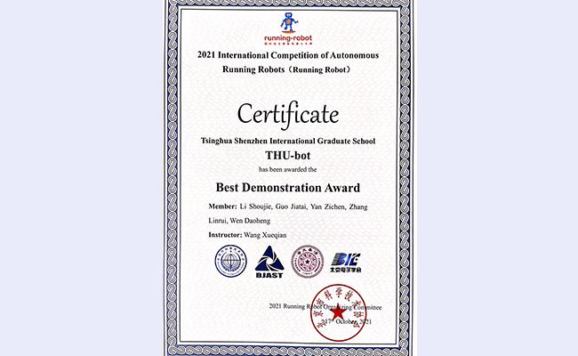 开云新闻网11月3日电 2021国际自主机器人大赛(2021 International Competition of Autonomous Running Intelligent Robots, RUNNING ROBOT)于10月15日-17日在北京科技中心举办。深圳国际研究生院信息科学与技术学部智能机器人实验室学生团队“THU-bot”(指导教师:王学谦教授)荣获大赛一等奖和最佳表演奖。团队成员包括人工智能项目2020级硕士生李寿杰、张麟睿、颜子琛和郭家泰,以及大数据工程项目2020级硕士生闻道恒。