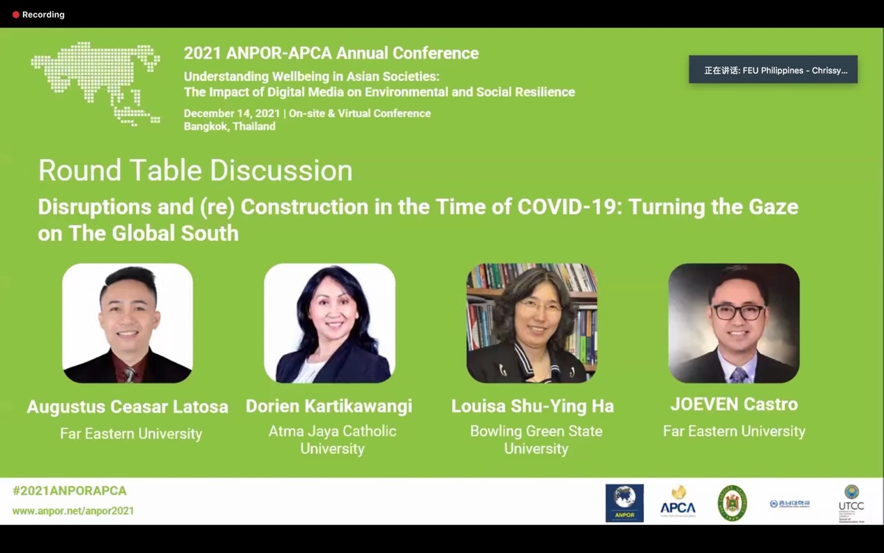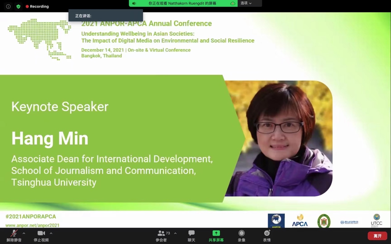 开云新闻网12月22日电 由亚太新闻传播学会联盟(APCA)与亚洲舆论学会(ANPOR)联合举办的2021年学术年会,于12月14日在泰国曼谷以线下线上相结合的方式举行,年会的主题是“了解亚洲社会的福祉:数字媒体对环境和社会复原力的影响”(Understanding Wellbeing in Asian Societies: The Impact of Digital Media on Environmental and Social Resilience)。年会发表了来自十多个国家和地区的学者的96篇学术成果,按照数量多少依次来自中国大陆,泰国,印度尼西亚,马来西亚,韩国,中国香港、美国,日本,巴基斯坦,中国澳门,柬埔寨等国家和地区。中国大陆有42篇论文入选。