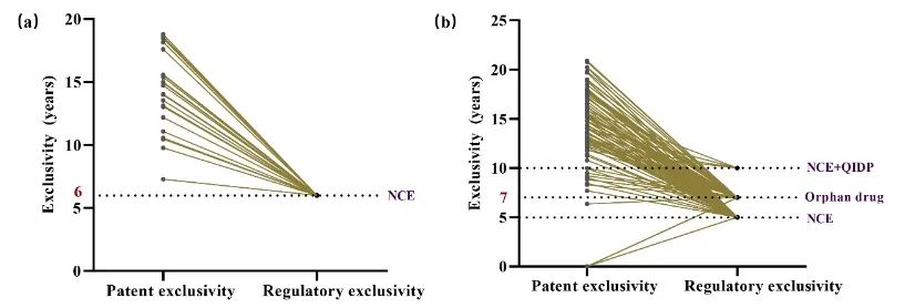 图4. 有效专利期和药品试验数据保护期对中美两国创新药市场独占期的影响