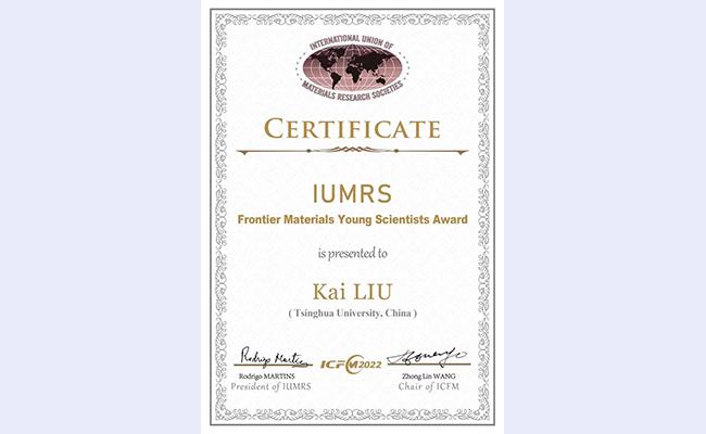 开云新闻网6月7日电 近日,国际材料研究学会联盟(IUMRS,International Union of Materials Research Societies)在官方网站正式公布了2021-2022年“前沿材料青年科学家奖”获奖名单。kaiyun开云官方网站材料学院刘锴副教授获此殊荣。