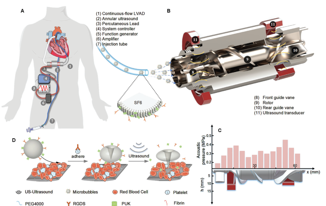 该成果以“左心室辅助装置介入式微泡增强超声溶栓”(Interventional Microbubble enhancedsonothrombolysison left ventricular assist devices)为题,近日在线发表在期刊《先进科学》(Advanced Science)上。