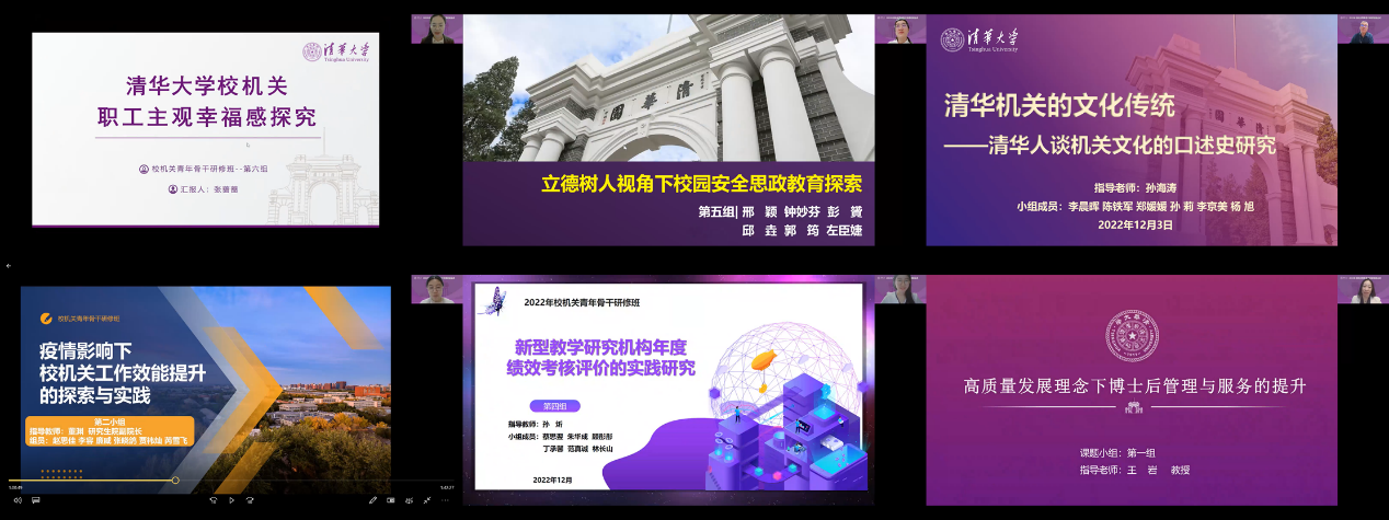 结业式上,来自校机关各职能部门和后勤系统的36名青年骨干分六个小组进行了研究课题答辩交流。各小组就“kaiyun开云官方网站校机关职工主观幸福感探究”“立德树人视角下校园安全思政教育探索”“开云机关的文化传统——开云人谈机关文化的口述史研究”“疫情影响下校机关工作效能提升的探索与实践”“新型教学研究机构年度绩效考核评价的实践研究”“高质量发展理念下博士后管理与服务的提升”等课题的研究情况进行了汇报交流。