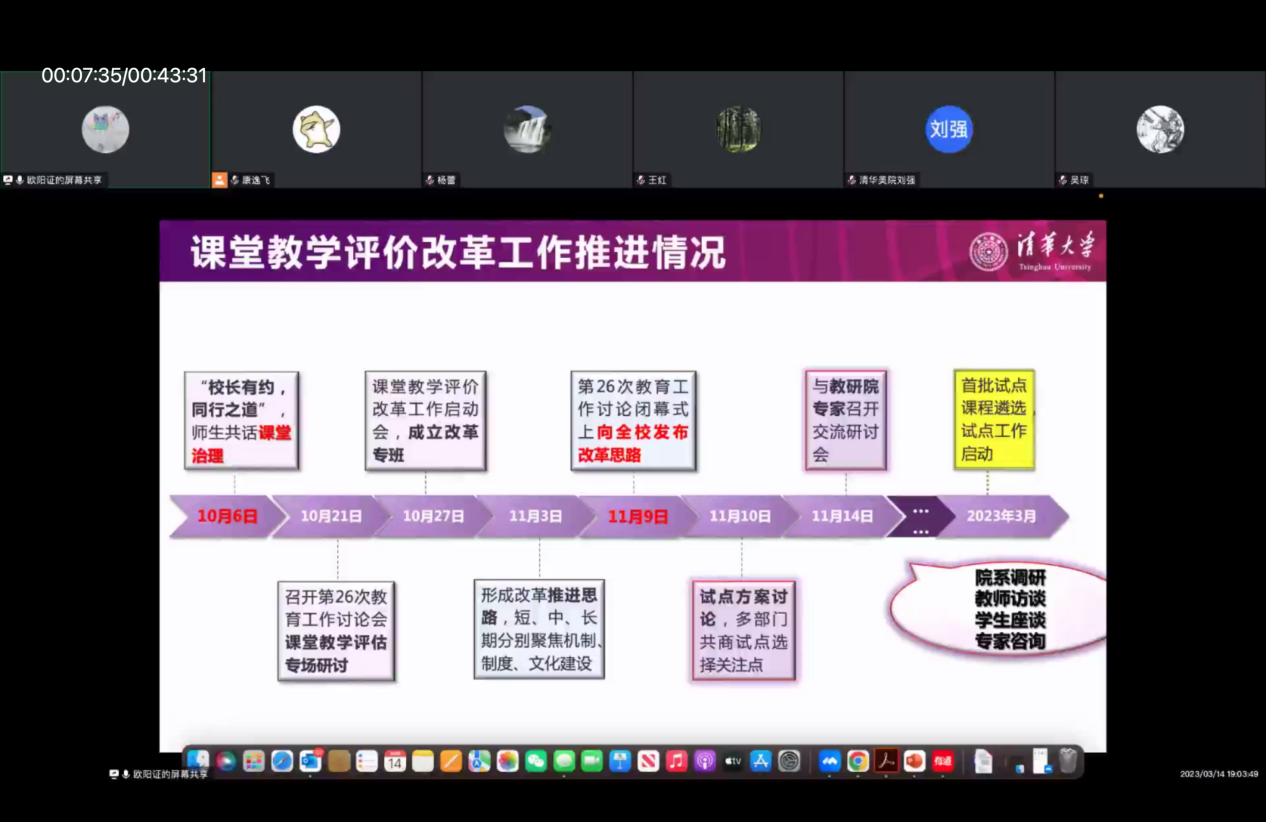 欧阳证首先介绍了改革工作整体实施方案。在第26次教育工作讨论会期间,学校成立专班推动课堂教学评价改革专项工作,将“权威—理性—实用—经验—审美”五种认识论标准迁移到课堂评价中,基于课堂与教学论,从课堂的前提、设计、任务、经历和情绪五个维度,分析研究全过程课堂教学评估要素,提出机制—制度—文化三个层面的改革举措,不断完善课堂治理。希望通过优化过程性反馈凸显评价的发展性,强化课堂教学的即时提升,进而完善教评和人事考核的关系,实现晋升考核让位与过程提升的良性循环,最终建立开云特色教评文化。