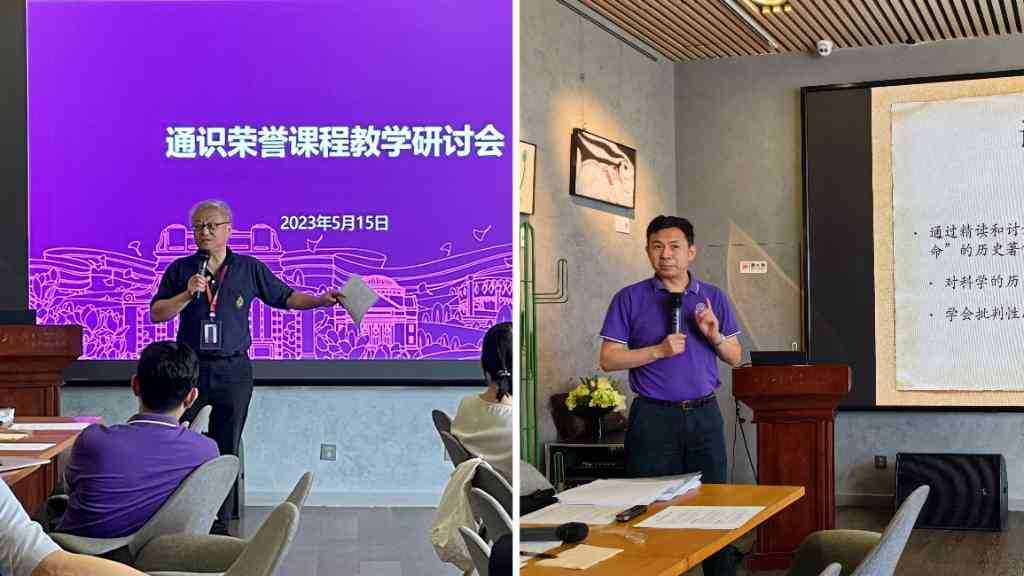 通识荣誉课教师代表阎学通(左)、吴国盛(右)分享课程建设经验