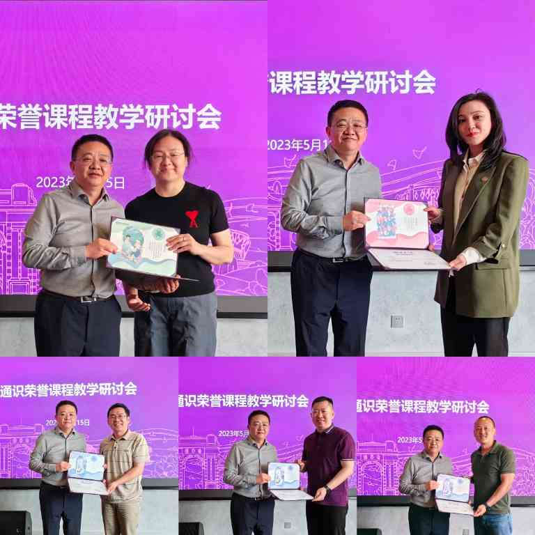 彭刚为第四批通识荣誉课负责人靳卫萍、肖薇、汤彬、周晋、李铁夫(从上至下、从左至右)颁发荣誉证书