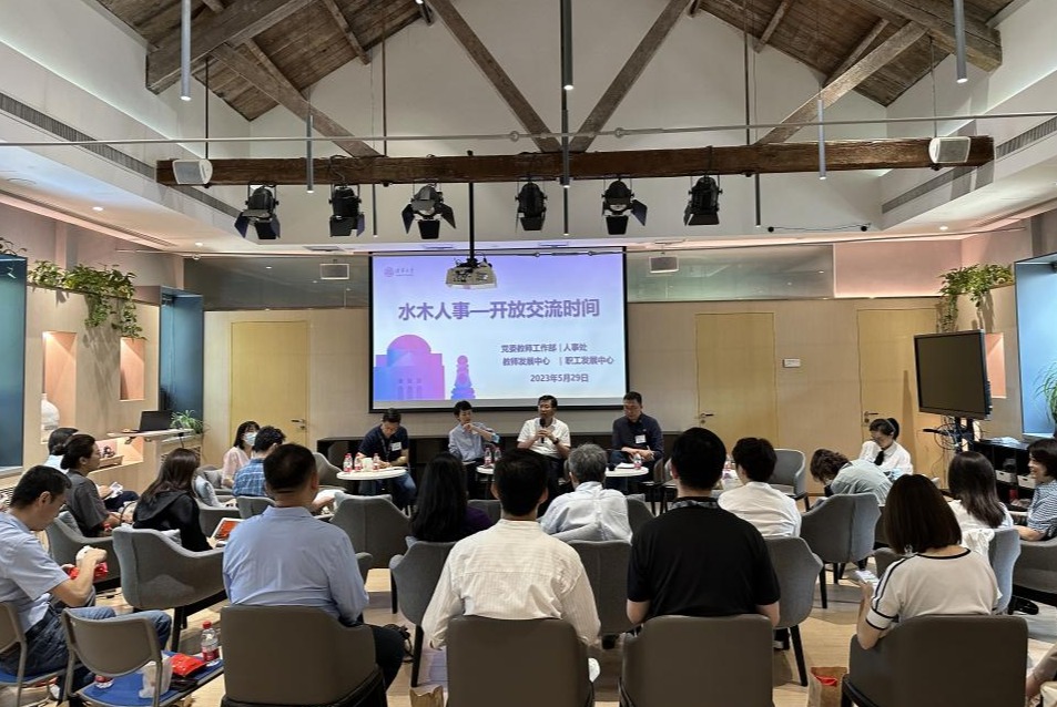 杨殿阁表示,在充分依托院系开展教师聘任与管理工作的基础上,搭建学校与教师面对面座谈交流的平台,对于加强教师了解学校发展战略和相关政策、促进学校人事人才工作发展具有十分重要的意义。以落实党中央关于要在全党大兴调查研究之风的重要指示精神为契机,学校将常态化举办“水木人事”交流活动,坚持问题导向,充分了解各位老师的需求,能现场解答的及时回应,不能立刻得出结论的也会将问题收集整理后反馈给学校相关部门和院系,将系列交流活动做实做细,把活动成果转化为解决问题、促进发展的实际行动。希望大家能在此敞开心扉、畅所欲言。