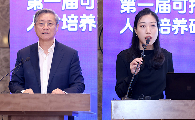 秀钟书院副院长刘建国主持第二部分座谈交流环节。来自政府、企业等单位的相关负责人分享了对可持续人才培养的思考和建议。