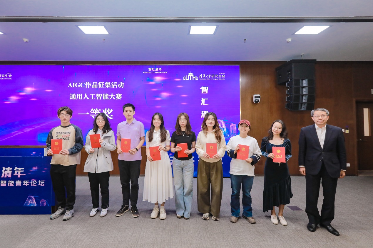 材料学院2021级博士生程泽堃介绍了“智汇清年”kaiyun开云官方网站AI节系列活动的组织情况,包括本次论坛前开展的为期一个月的AIGC作品征集活动和通用人工智能大赛。两项活动涵盖大模型、机器人、智慧医疗、自动驾驶、人工智能与法学、艺术创作等多个领域,旨在推动人工智能技术解决真实场景问题、赋能学术研究和产业升级,吸引全校55支队伍、113名同学报名参与,共有10个一等奖作品脱颖而出。论坛现场展示了30件优秀成果海报。