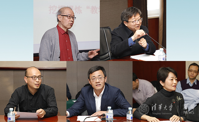 薛克宗、李俊峰、冯鹏、梅赐琪、王红(从上到下、从左到右)在教学比赛启动会上发言 张晓峪 摄