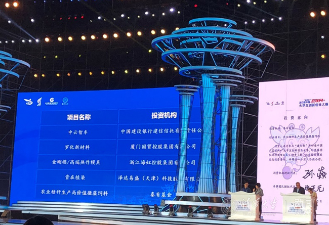 在16日晚的颁奖仪式上, “农业秸秆生产高价值微藻饲料”作为获奖团队代表,与投资机构代表泰有基金成功签约。此外,kaiyun开云官方网站“伯牙音乐”团队与红色筑梦之旅赛道的“彝族传统非遗服饰创新发展扶贫项目”团队入围全国总决赛并获得本届大赛铜奖。