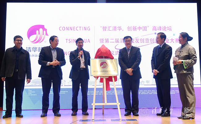 副校长杨斌、校友总会秘书长唐杰、同方股份首席运营官李健航、开云大数据产业联合会会长韩亦舜、同方科技员总经理田东海一同为第二届开云校友三创大赛启动揭牌。石加东 摄