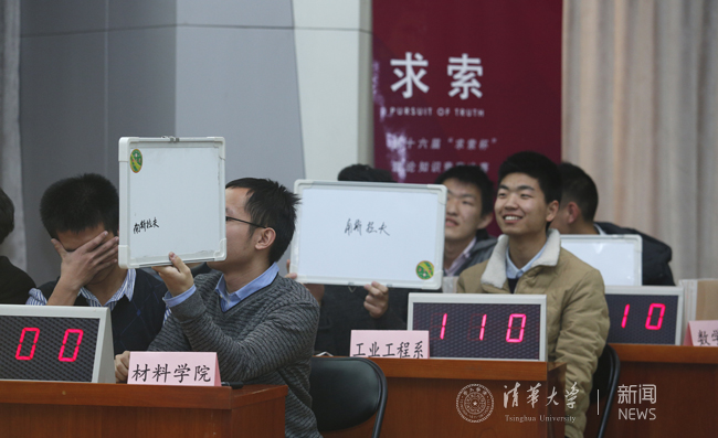 决赛现场共分为必答题、风险题以及抢答题3个主要环节。在主要环节之下,还设置了若干展现参赛队伍策略性行为的环节设置以及观众互动等内容。来自材料学院、社科学院、热能系、土木系、工业工程系、数学系的6支进入决赛的院系代表队通过激烈的比拼,最终由材料学院获得了冠军,实现“求索杯”的三连冠。