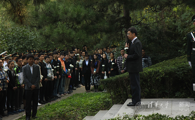 敬献花圈后,学生代表、校学生会主席唐诗童做了发言,她在发言中谈道,当每一个人选择事业,完成梦想,试探着去走出人生的每一步时,都应常想起,这些当民族遇到危难,当国家有需要,愿意站在风口浪尖去闯、去实现,去投身于时代的潮流、去引领未来的方向,甚至是甘于为此奉献出自己生命的祖国儿女们。他们是我们一生的榜样。