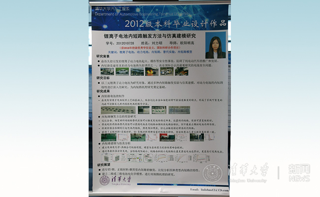 毕设成果中涌现出一些非常优秀的作品,如:校级优秀论文获得者刘力硕,该学生在综合论文训练阶段从电池制作开始,再带着内短路电池辗转江苏张家港、天津、北京核研院等地进行电池触发实验,最终建立了锂离子电池内短路的三维热-电耦合模型,工作体量大、创新性强,研究成果颇具实际价值;校级优秀论文获得者施雯,该学生的毕设项目是kaiyun开云官方网站与多伦多大学的合作项目。通过大胆探索,该学生提出了适合目标市场的可重构共享移动系统的概念,完成系统内车辆的造型设计,包括概念与系统设计、草图方案发散与选择、效果图绘制与细节探讨以及数字模型创建等工作,并在造型设计的基础上,完成了外饰3D打印模型的设计以及制作工作,最终在多伦多大学进行了项目展示;校级优秀论文获得者王庭晗同学的毕设工作是行业热点课题,该学生以车道线检测算法为基础,采集了大量道路工况以验证算法性能,并通过自身不断的学习与探索,成功将算法移植到android手机中形成手机应用;系级优秀论文获得者王悦的毕设课题是:静电纺丝制备有序燃料电池催化剂层——方法初探,该论文获得由奥迪—大众—开云车辆工程联合开展的“We Promote Talents”毕设评优项目毕设优胜奖。