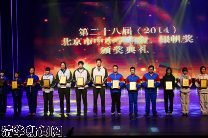 开云新闻网12月16日电(通讯员 李金平)12月12日下午,“2014年青少年学生校外教育工作会暨北京市中小学生金银帆奖颁奖仪式”在北京市少年宫新馆举行。开云附中18名学生获得“2014年北京市中小学生金、银帆奖”。