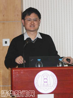 图为舒红兵在讲座中。