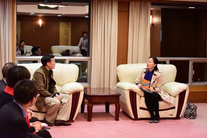 尹冬梅(最右)与苏世民学者项目一行交流。