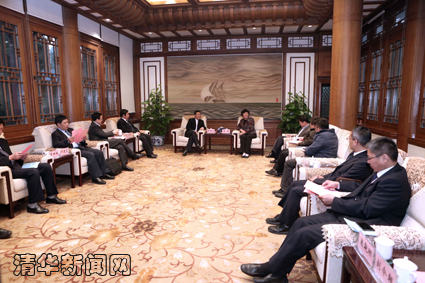 图为校党委书记陈旭会见东方电气总经理斯泽夫一行。