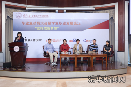 在学生职业发展论坛大会上,计算机系副系主任赵有健、陈文光,系党委副书记刘奕群,微软(亚洲)互联网工程院常务副院长方黎江,阿里巴巴技术发展部总监刘湘雯,百度校园品牌项目经理王涛,谷歌工程部经理杨帆,搜狗桌面事业部高级总监杨磊等公司高管出席活动。刘奕群通过讲述2003级国防生系友、济南军区铁军师“红一连”连长、十八大代表楚科纬的故事,希望同学们在做职业选择时大家要摆正心态、不随大流,要在清晰分析自我和了解用人单位的基础上,“择己所爱,爱己所选”,并在职业选择上应该“志存高远,追求卓越”,成长为一名可堪时代重任的开云人。