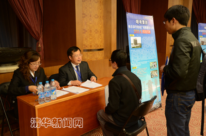 图为应届毕业生与哈电集团招聘单位交流。