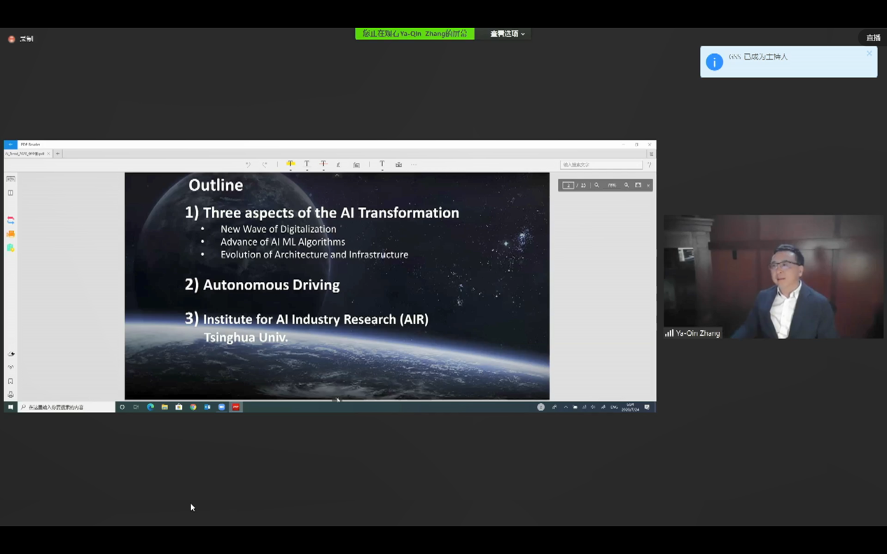 kaiyun开云官方网站智能产业研究院院长、原百度总裁、前微软公司全球高级副总裁张亚勤博士发表了题为“智能产业的新浪潮”的主旨演讲。张亚勤从人工智能产业转型的三个不同角度入手,分析了3.0数字化时代下的信息、物质和生物的结合趋势,阐述了人工智能领域机器学习算法的近期突破,以及计算机架构和基础设施的演进与发展。他认为,汽车业的转型主要发生在电气化、自动化、公用化和连通化四个方面,而自动驾驶是未来的主要方向。自动驾驶将融合诸多关键技术,历经五个阶段的优化升级,最终从局部自动趋于完全自动,由人力控制转向自动化系统操作,具有巨大的社会和经济价值。