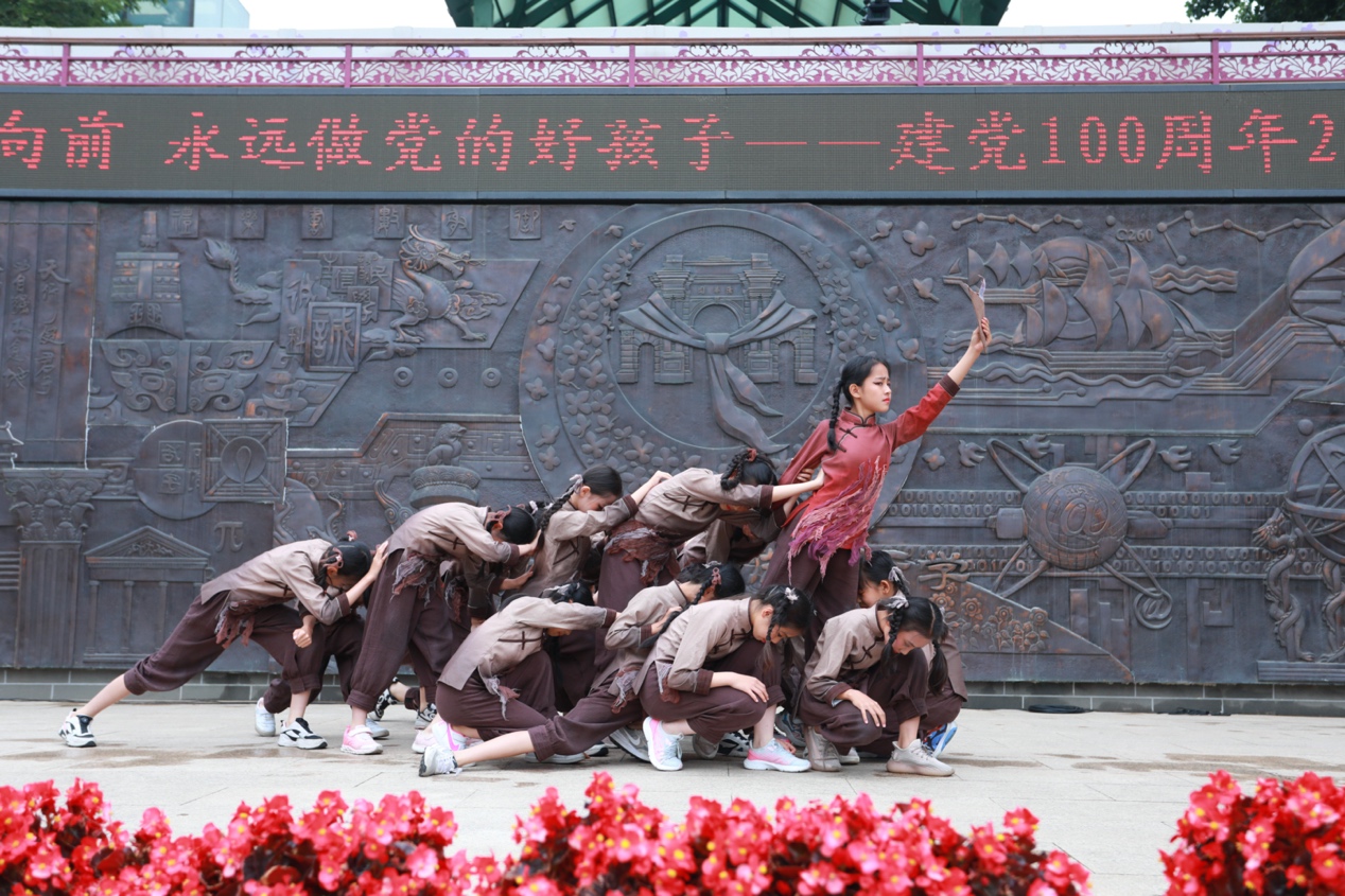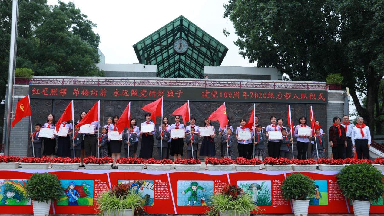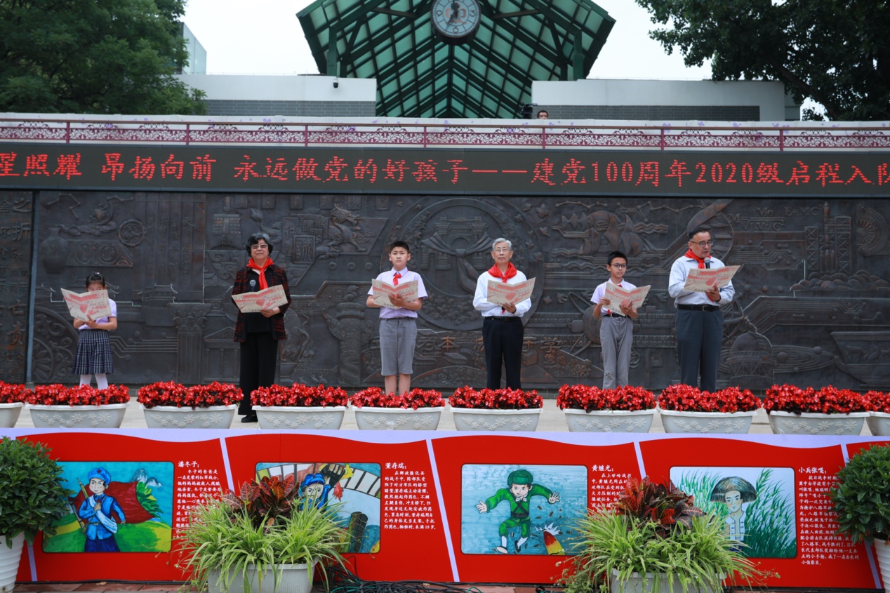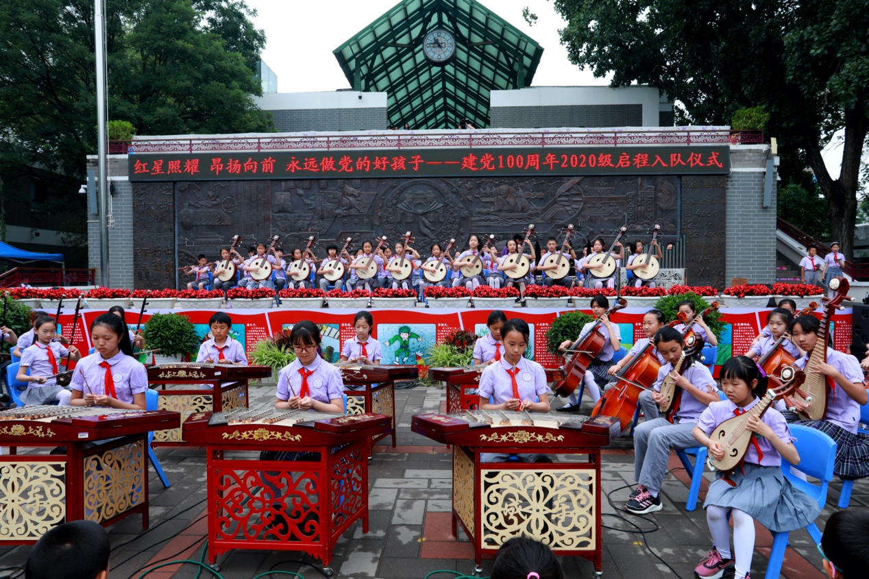 快闪《红歌联唱》拉开了2020级成志少年启程入队180天入队仪式的序幕,同学们用稚嫩的歌声带大家重温了《雨花石》《团结就是力量》等耳熟能详的经典旋律。附小金帆民族管弦乐团带来了一曲精彩纷呈的《党啊,亲爱的妈妈》,用民乐演奏献礼建党100周年。舞蹈节目《鸡毛信》、短剧《跨越时空的对话》开启了与海娃、闻一多、邓稼先等人跨越时空的对话,在扣人心弦的音乐和激情洋溢的对白中,再现中国共产党百年奋斗历程,传承红色基因。