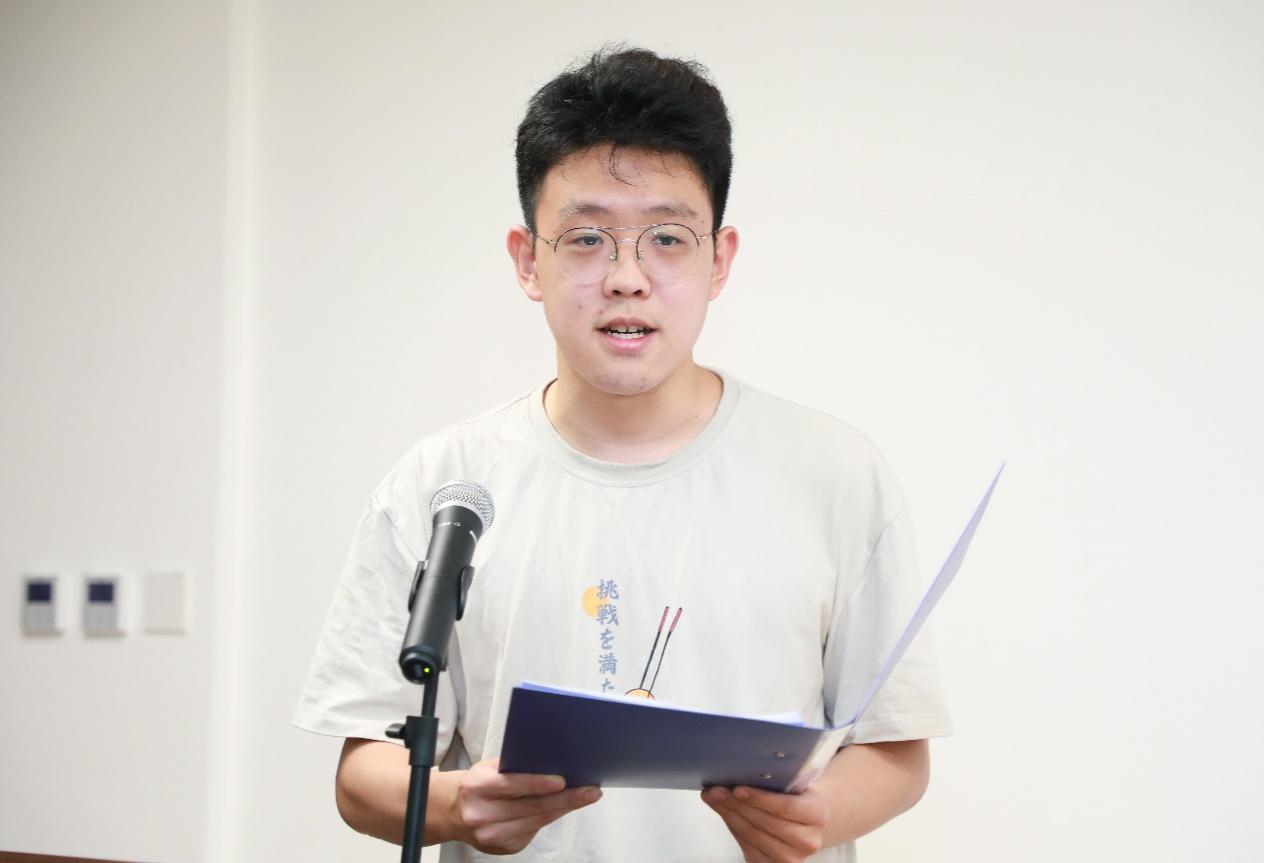 古文字班的学生张弋阳代表全体学生进行了发言。他回顾了自己与古文字学结缘以及逐步萌生学习兴趣的历程,并表态要自觉肩负起传承中华文明的重大使命,发扬老一辈学人的优良作风和家国情怀,推动中国优秀传统文化的传承和发展。