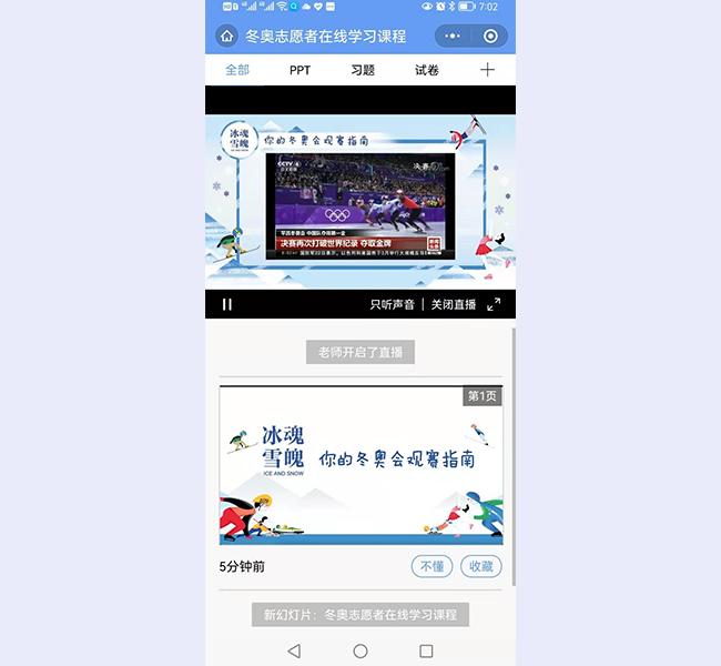 “冬奥志愿者在线学习课程”通过雨课堂直播授课中