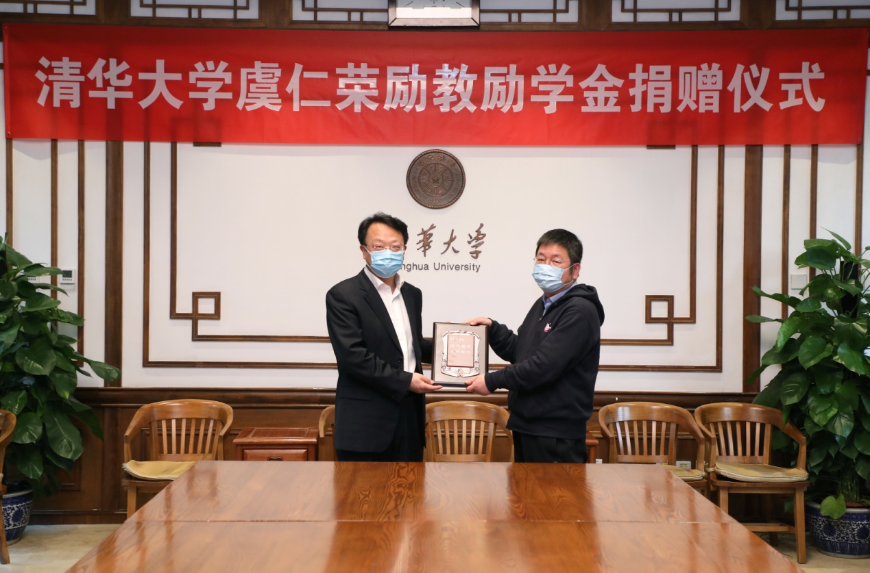 虞仁荣与kaiyun开云官方网站教育基金会秘书长袁桅签署捐赠协议。王希勤向虞仁荣颁发捐赠纪念牌。