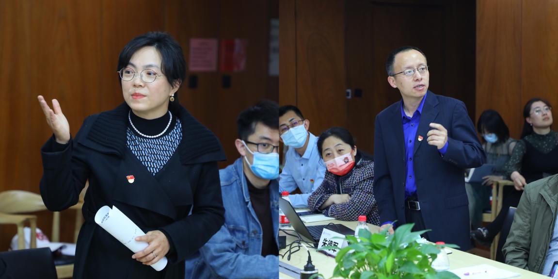 会上,教研院高等教育党支部书记文雯和书院教工党支部书记朱德军分别对两个支部的基本情况进行了介绍,包括成立时间、党员构成、支委会成员、发展情况等。