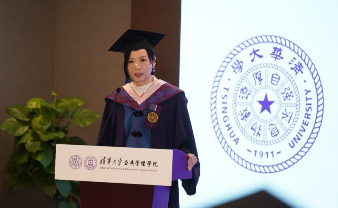 典礼上,EMPA项目授课教师代表于安致辞,毕业生代表林致茵发言。