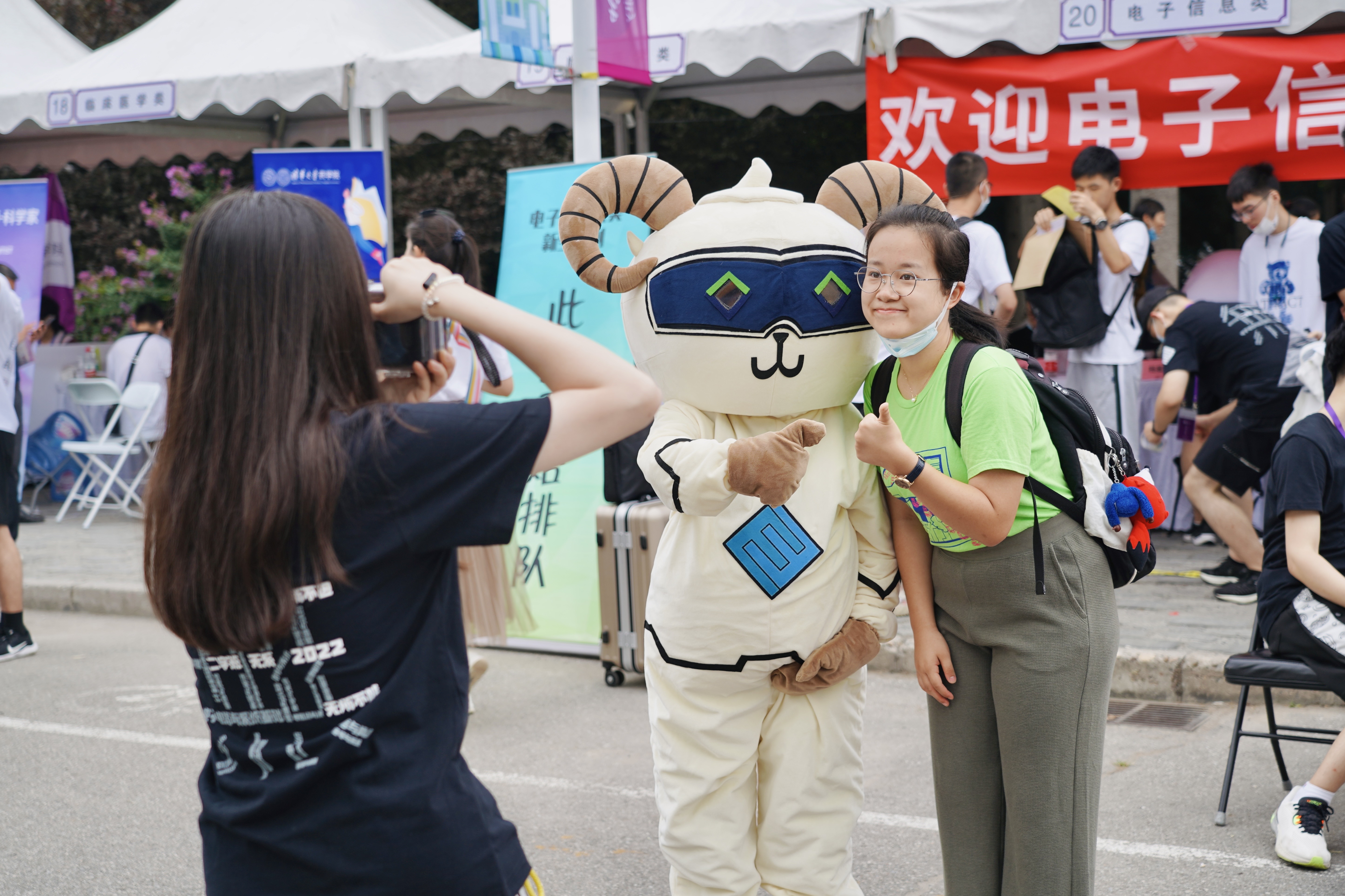 新同学与吉祥物合影