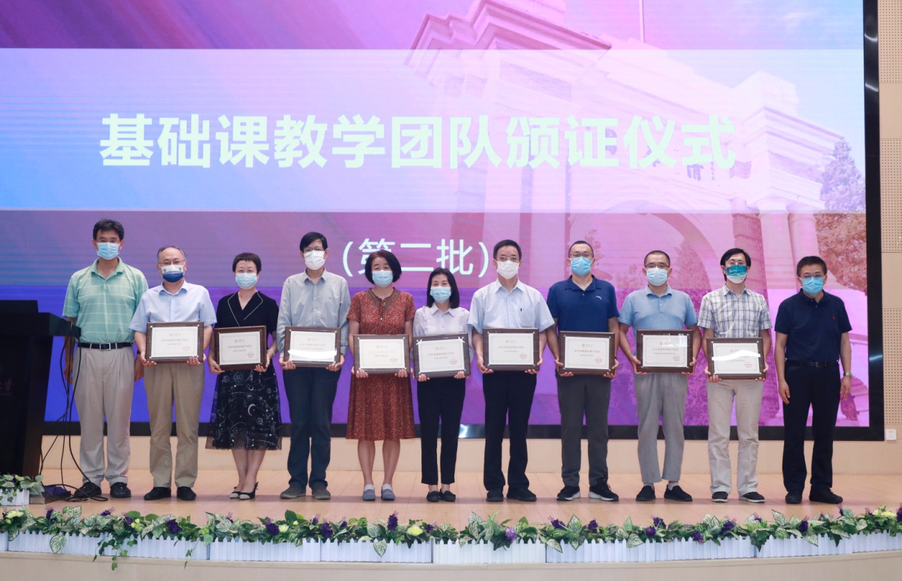 会上公布了第二批基础课教学团队名单,彭刚向教学团队代表颁发证书并合影留念。