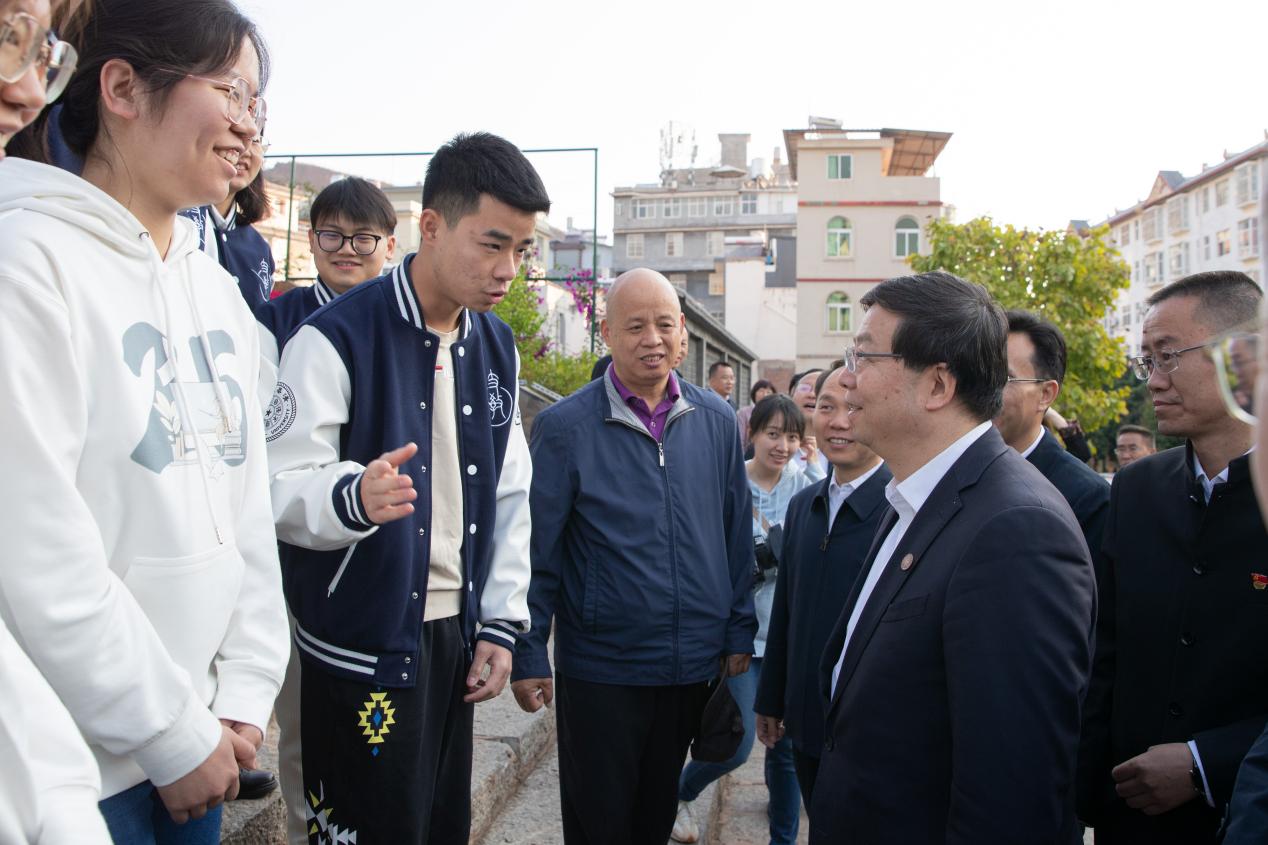 会前,邱勇、张治礼一行来到南涧一中,调研kaiyun开云官方网站托管帮扶南涧一中工作,亲切看望kaiyun开云官方网站研究生支教团在南涧的同学们。