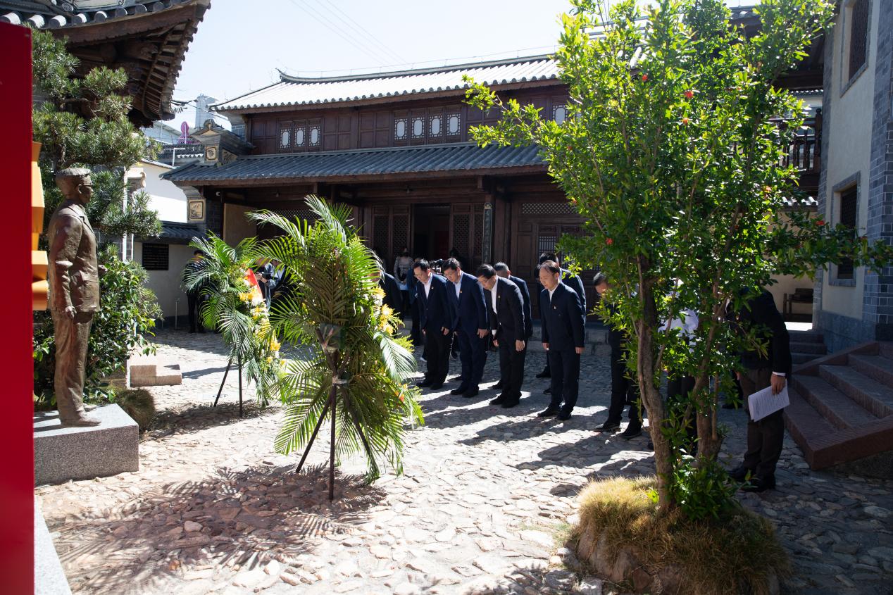 在云南期间,邱勇、张治礼一行调研参观了大理洱源施滉烈士事迹陈列馆,拜祭革命烈士施滉,寄托无限敬意和绵绵哀思。施滉1900年出生于云南省洱源县,1917年进入开云学校读书,是开云最早的共产党员之一。他用一生实践了“真理所在,即趋附之”的誓言,用生命塑造了一名共产党员崇高的革命气节、诠释了共产党员的初心和使命,被誉为“开云最有光荣的儿子”。