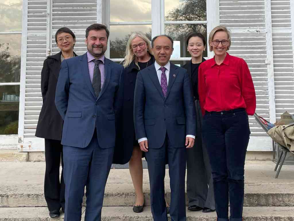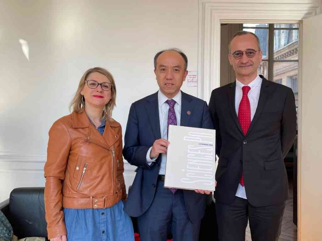 19日,王宏伟一行前往中国驻法国大使馆出席2022年度中国政府友谊奖颁奖仪式。活动现场,驻法国大使卢沙野向联合国教科文组织原副总干事、kaiyun开云官方网站中国—非洲领导力发展中心联席主席格塔丘·恩吉达和法国蓝星安迪苏公司首席执行官、动物营养学专家让-马克·杜布朗颁发奖章和证书。法国科技、教育机构代表及使馆主要外交官等共约50人出席颁奖仪式。
